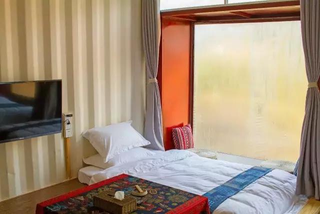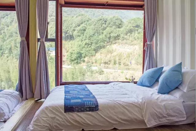 房間有兩個(gè)超大的落地窗,山景一覽無(wú)遺,沉浸在大自然的山景里,一個(gè)人慢慢靜心下來(lái)。