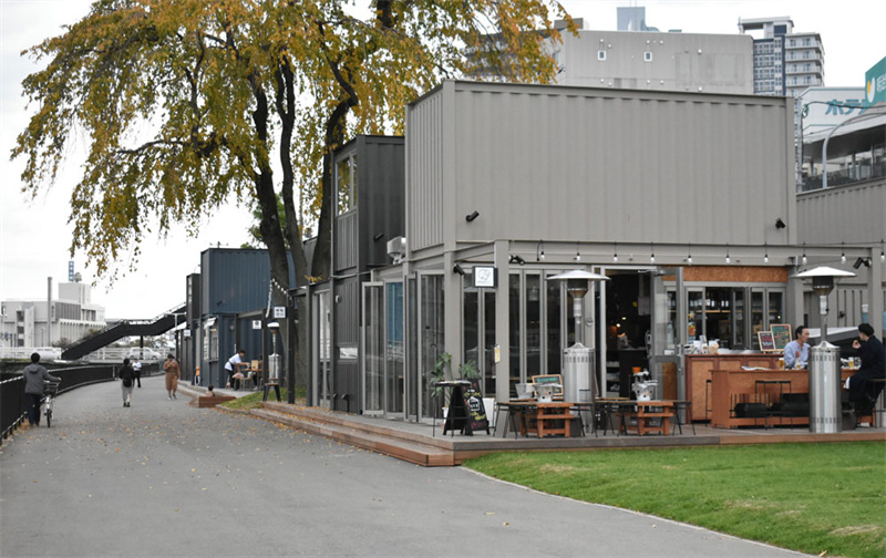 這是位于日本紀(jì)實(shí)市的城市一角,通過(guò)在工廠中預(yù)設(shè),快速在河畔旁落成一個(gè)集裝箱建筑群,作為休閑園區(qū),是為改善現(xiàn)有的紀(jì)實(shí)市Ryokuchi地區(qū)環(huán)境而建立的,為附近居民們提供豐富多樣的生活?yuàn)蕵?lè)方式。