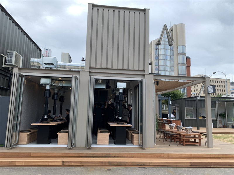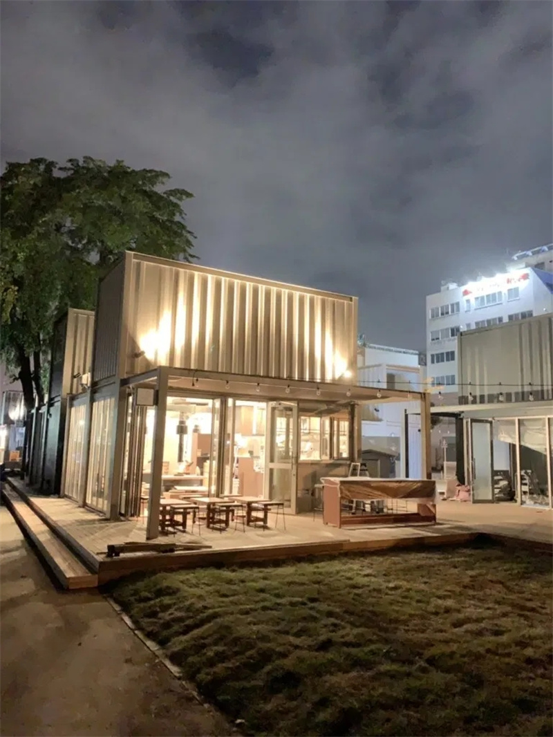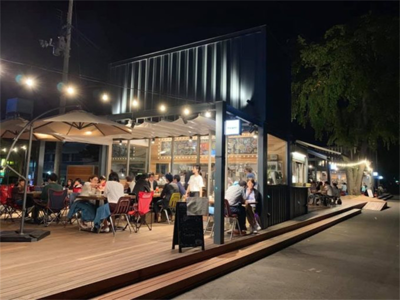 其實(shí)這些集裝箱建筑都有著統(tǒng)一而時(shí)尚的風(fēng)格,但同時(shí)又有著各具特色的店面設(shè)計(jì),讓你可以區(qū)分不同的店家??v觀建筑物,有的店家將其店面進(jìn)行混凝土澆筑,有的則替換了許多落地玻璃窗打造浪漫玻璃屋,還有的拉上了星星燈來(lái)點(diǎn)綴夜景……