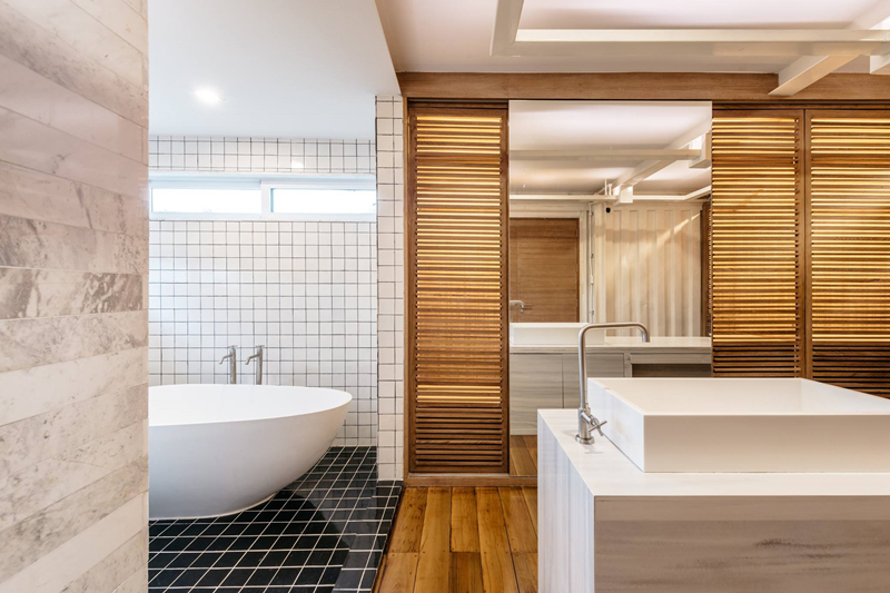 浴室同樣也是很寬敞,而且按功能劃分區(qū)域。墻體上瓷磚的設計會使得房子的防潮效果更好,浴缸的存在簡直就是豪宅的標配了~