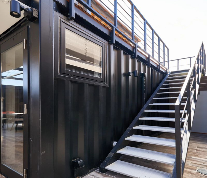 該建筑物同時擁有著容器的硬度和豪華的內(nèi)飾,它是一種減弱了容器概念的飾面,創(chuàng)造奢華感。僅從外觀看集裝箱房的形象,就像車庫一樣簡單又復(fù)古,從而形成了室內(nèi)與室外強烈的反差。