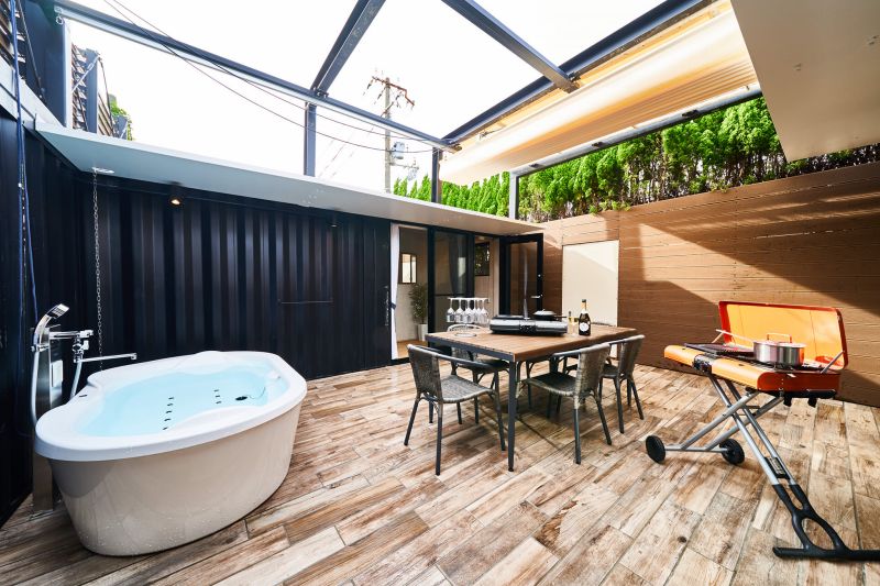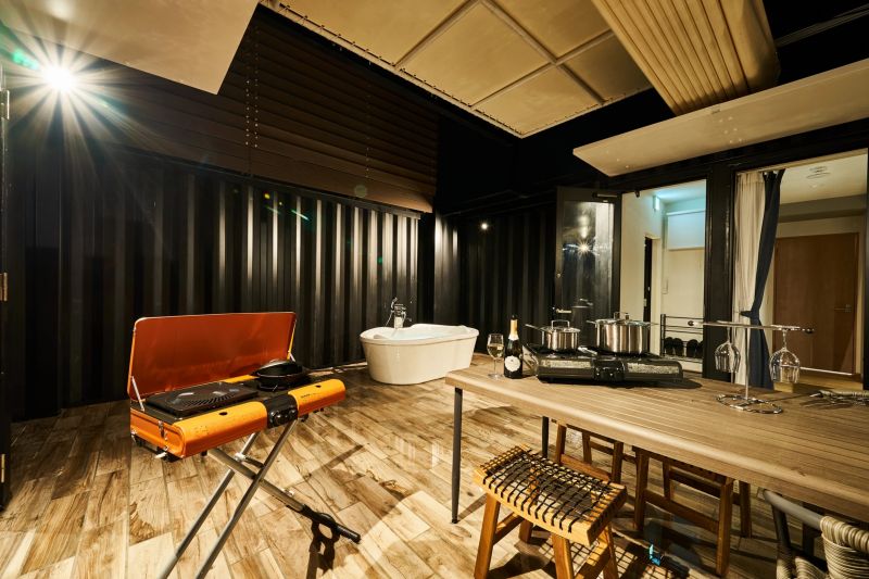Rakuten STAY VILLA 作為一種時尚的集裝箱房屋類型。其外觀與別致的色彩融為一體,營造出奢華感。整座建筑都配備了微型游泳池,入住者可以在晴朗的日子里一邊欣賞繁星點點的天空,一邊欣賞流行的音樂。此外,戶外甲板還配有燒烤爐,可以在極具開放感的空間內(nèi)享用餐點。