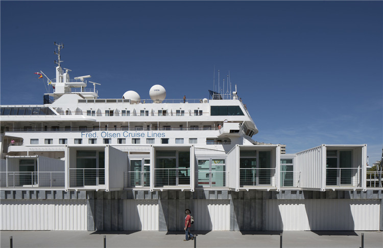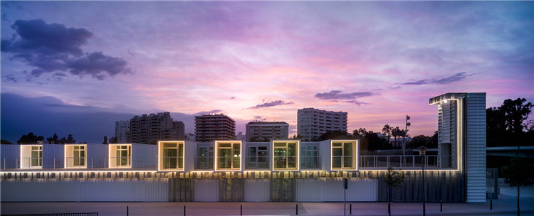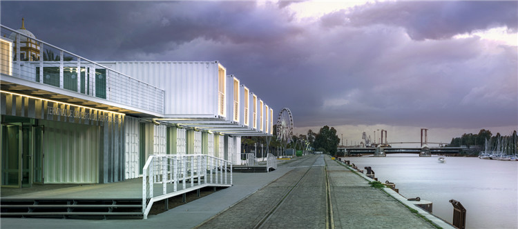 該郵輪碼頭法案是由塞維利亞港口管理局提出的, 并由建筑商設(shè)計(jì)完成,該項(xiàng)目利用了可回收集裝箱的建構(gòu)潛力,通過(guò)可持續(xù)模塊化單元達(dá)成可變換的目標(biāo),并通過(guò)不斷調(diào)整適應(yīng)當(dāng)?shù)氐牡刂泻夂颉?