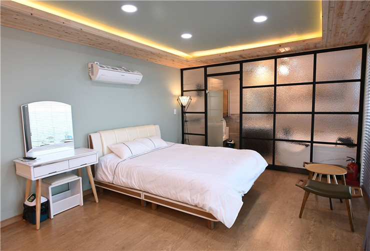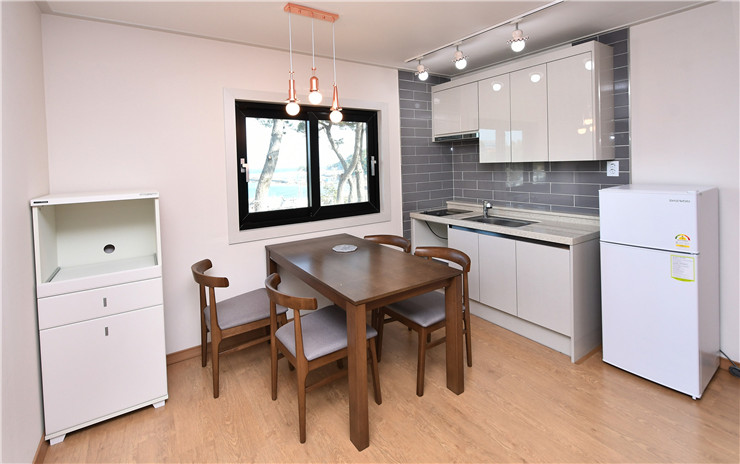 室內(nèi)設施,一樓是客廳和廚房,二樓是套間臥室和戶外平臺。墻體天花進行了隔熱保溫處理,加寬的空間感十分舒適,環(huán)境簡單干凈。