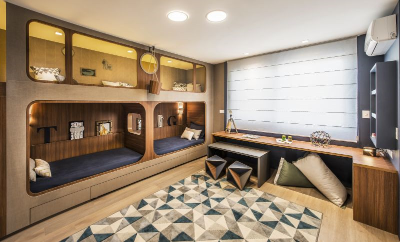 住宅展示了多種不同的臥室設計,包括豪華的主臥、精致的次臥還有多床的兒童房等。同時也配備了不同的衛(wèi)浴間設計,從獨立的淋浴大空間到走廊式設計應有盡有,還有一個洗衣房,滿足不同的生活喜好和習慣。