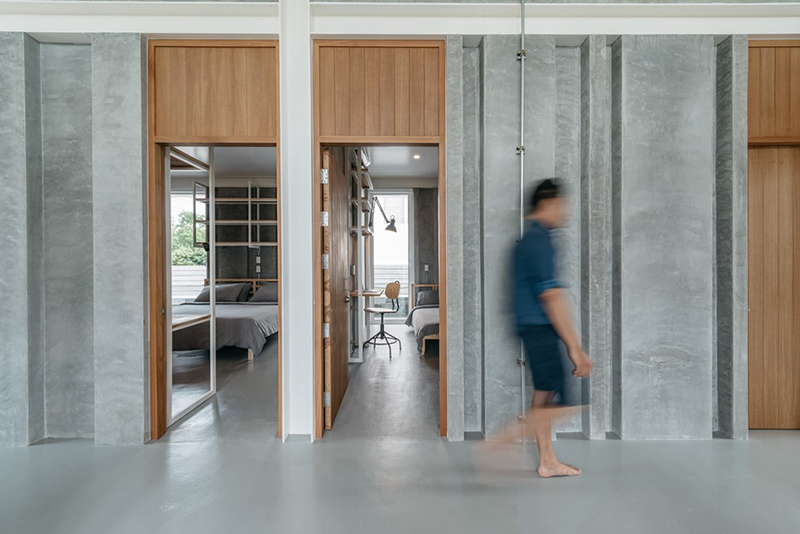 此外,建筑師還在從地板到天花板的位置鉆了一個垂直的大開口,作為住宅的門和窗,為自然采光和開放通風(fēng)打造有利條件,即使在白天也不需要開燈光電源,使房屋通風(fēng),減少熱量。對于聲音管理,隔熱鑲板方法有助于防止噪音。