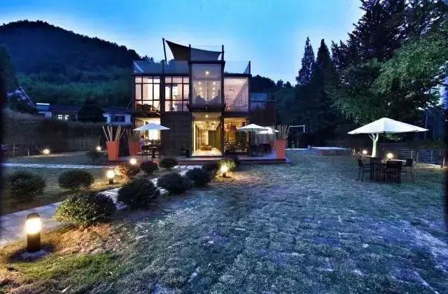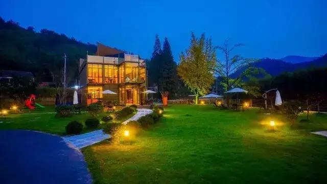 夜幕降臨,整個度假別墅展現出另一種美柔和的燈光照耀下,溫馨感、藝術感相互交織。