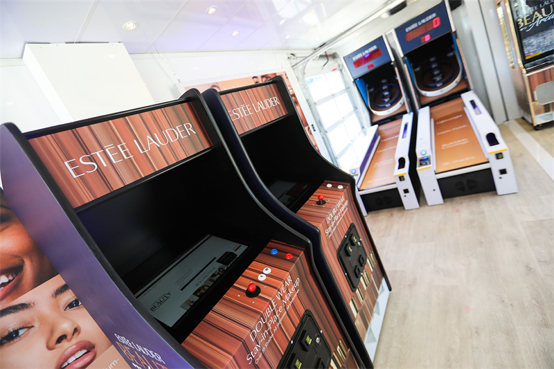 一路上有化妝主題街機(jī)風(fēng)格的游戲,人們可以玩積累優(yōu)惠券,他們可以交換禮物...禮券越多優(yōu)惠券!人群將穿過游戲區(qū),然后爬上一層以兌現(xiàn)他們的優(yōu)惠券。然后它就到了照相亭,參觀者可以立即打印照片,幾乎是真人大小,在大幅面打印機(jī)上作為紀(jì)念品,來滿足游客對雅詩蘭黛Arcade體驗(yàn)。