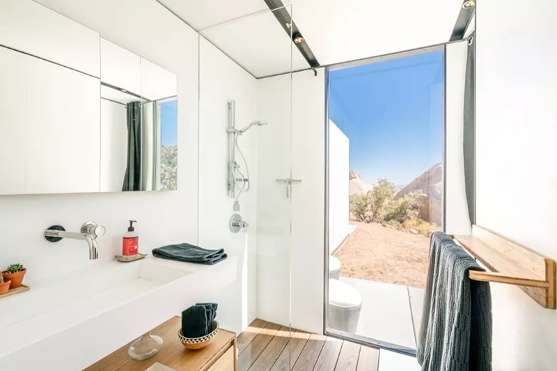 這套低沖擊、兩居室的集裝箱房屋體現了極簡主義風格的戶外環境。這個偏僻的地方被群山環繞,可以看到周圍超凡脫俗的景色,是遠離城市休閑的理想之地。為了盡可能保護原始環境,采用集裝箱設計并建造了這樣一套兩臥兩衛的房子。