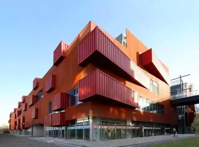 在窮到只有一個(gè)集裝箱的情況下,設(shè)計(jì)手法一般會(huì)直接利用集裝箱本身的色彩加上在集裝箱體上的平面構(gòu)成處理或是新增外表皮及立面構(gòu)件▼