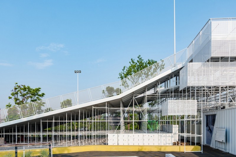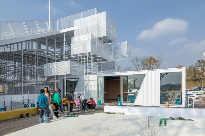 一級休息平臺結合集裝箱建筑作為入場前的準備,二級平臺及建筑則是包含初級道出發平臺、通向中級道出發平臺的通道、休息等待、家長及陪同休息廳、物品儲備等等一系列綜合功能。